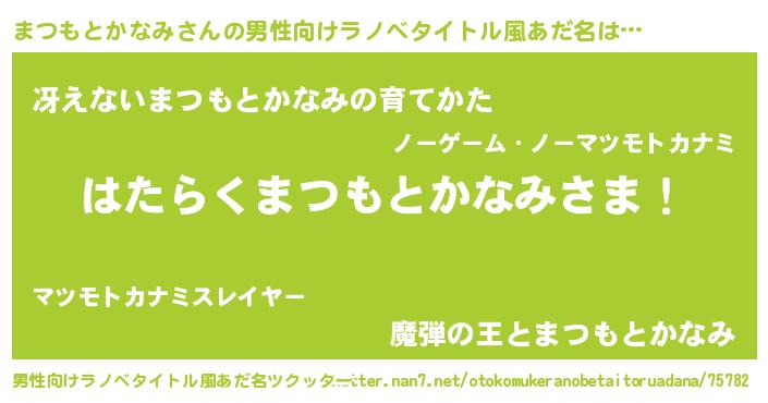 | 意味不明あだ名 | 『住所不定無職まつもとかなみ(71歳)』 |