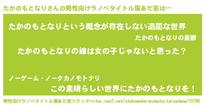 | 女子向けラノベタイトル風あだ名 | 『たかのもとなり様がみてる』 |