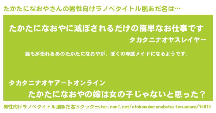 | 意味不明あだ名 | 『永久保存たかたになおや』 |