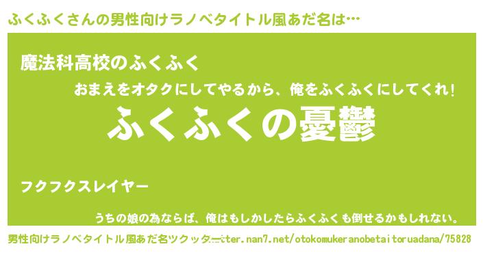 | 女子向けラノベタイトル風あだ名 | 『(仮)ふくふくのやんごとなき事情』 |