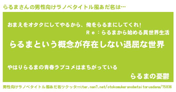 | ヘコむあだ名 | 『らるま(遠い目)』『らるっふぃ~』 |