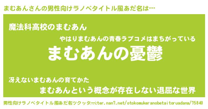 | 胡散臭い通販商品みたいなあだ名 | 『モテモテ間違いなし水晶球…その名も「まむあん」』 |