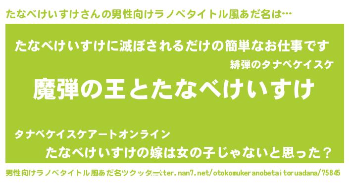 | 女子向けラノベタイトル風あだ名 | 『たなべけいすけが死なない童話 林檎のたなべけいすけの診療簿』 |