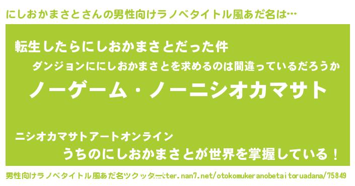 にしおかまさとさんの男性向けラノベタイトル風あだ名をツクッター!