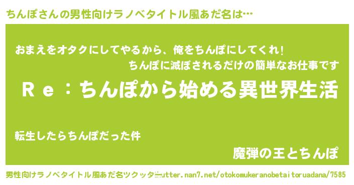 | 女子向けラノベタイトル風あだ名 | 『ちんぽストレイドッグス』 |