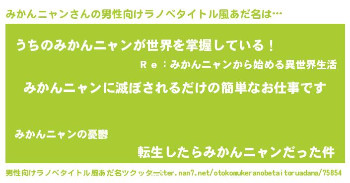 | 女子向けラノベタイトル風あだ名 | 『横柄みかんニャンと宰相陛下』 |