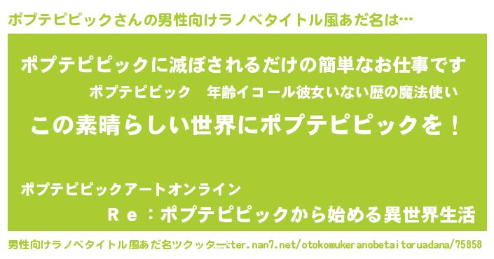 | 胡散臭い通販商品みたいなあだ名 | 『あなたにだけ特別に提供する100年もののヴィンテージワイン…その名も「ポプテピピック」』 |