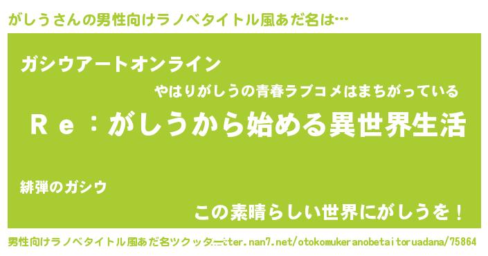 | 胡散臭い通販商品みたいなあだ名 | 『テレビで話題のアガリクス…その名も「がしう」』 |