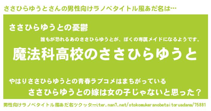 | 女子向けラノベタイトル風あだ名 | 『ささひらゆうとなんてお断りですっ。』 |