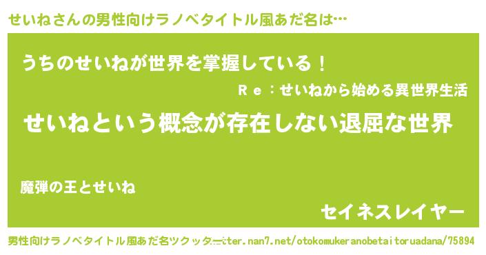 | 胡散臭い通販商品みたいなあだ名 | 『来世でも幸せになれる健康食品…その名も「せいね」』 |