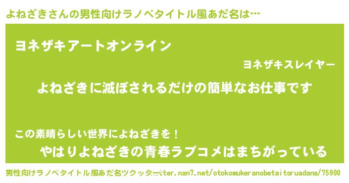| ファンタジー風あだ名 | 『ヨネフェル』『エターナルヨネザキー』 |
