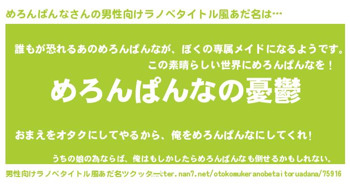 | 胡散臭い通販商品みたいなあだ名 | 『必ず成功するブレスレット…その名も「めろんぱんな」』 |