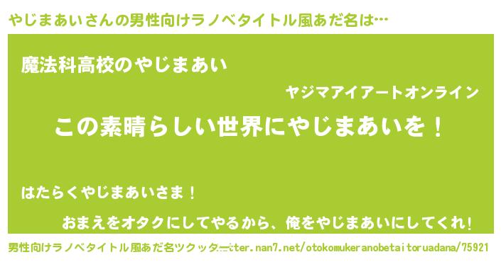 | 女子向けラノベタイトル風あだ名 | 『乙女ゲームの破滅フラグしかない悪役やじまあいに転生してしまった…』 |
