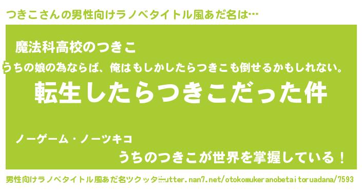 | 意味不明あだ名 | 『もやし科つきこ属』『自称つきこ』 |