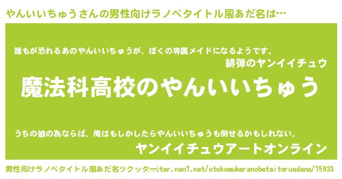 | ヒーロー風カッコイイあだ名 | 『ウルトラ戦士ヤンイイチュウ』 |