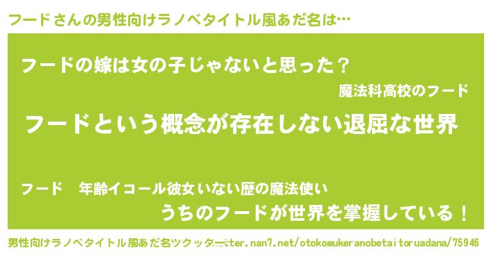 | 女子向けラノベタイトル風あだ名 | 『フードの契約王妃』『フード様がみてる』 |