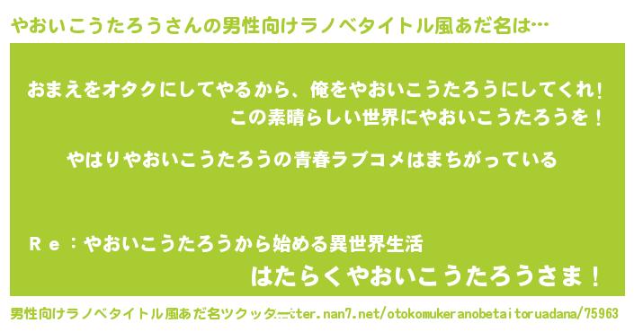 | 意味不明あだ名 | 『やおいこうたろうフォーエバー』 |