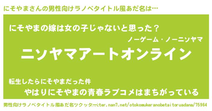 | 女子向けラノベタイトル風あだ名 | 『誰かこのにそやまを説明してください! ~契約から始まるウェディング~』 |