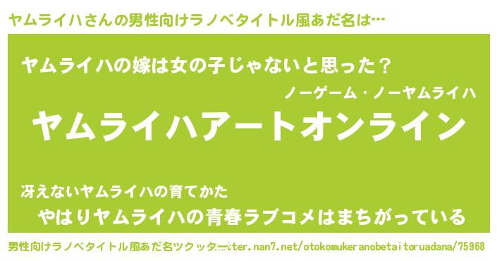 | 胡散臭い通販商品みたいなあだ名 | 『億万長者になれる水晶球…その名も「ヤムライハ」』 |