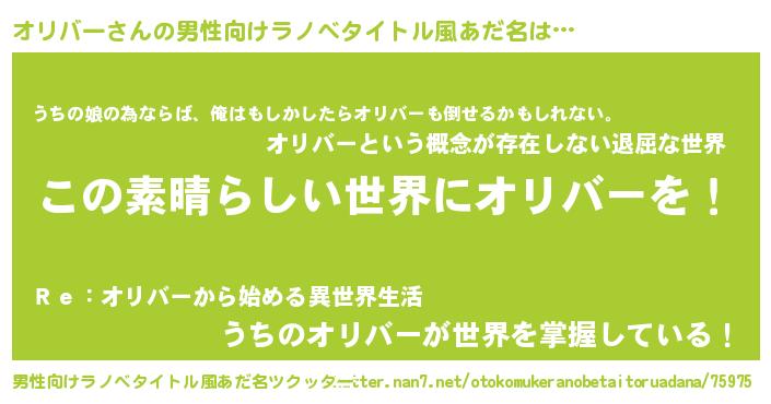 | 女子向けラノベタイトル風あだ名 | 『悪役オリバーに転生したようですが、知った事ではありません』 |