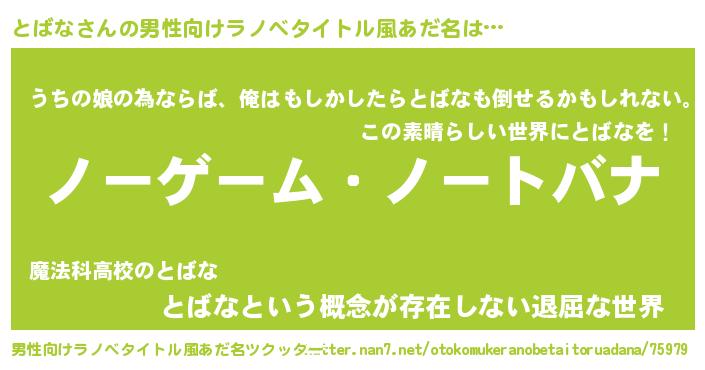 | ヒーロー風カッコイイあだ名 | 『天空の使者とばな』『ネオトバナ』 |