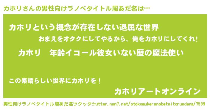 | ヘコむあだ名 | 『カホリ(遠い目)』『カホっふぃ~』 |