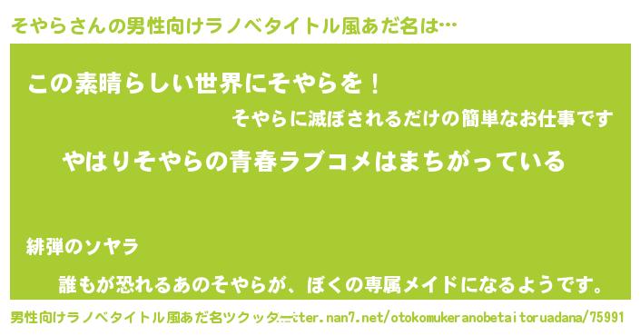 そやらさんの男性向けラノベタイトル風あだ名をツクッター!