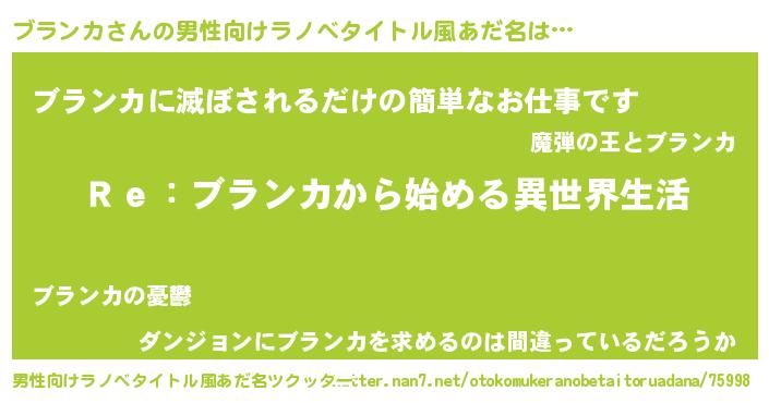 | ヒーロー風カッコイイあだ名 | 『最強戦士ブランカ』『炎刃騎士ブラ』 |