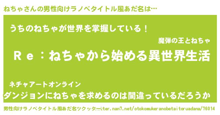 | 女子向けラノベタイトル風あだ名 | 『ねちゃストレイドッグス』 |