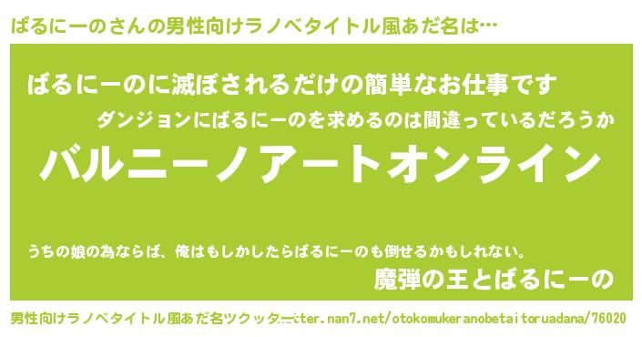 | 女子向けラノベタイトル風あだ名 | 『ばるにーの姫と円卓の騎士』 |