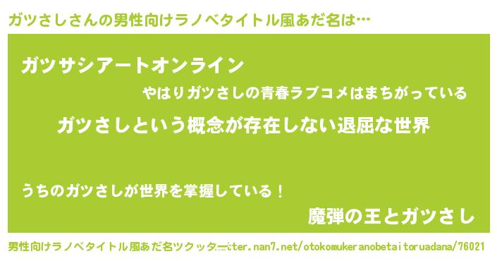 | ファンタジー風あだ名 | 『ガツディッシュ』『ガツフェル』 |