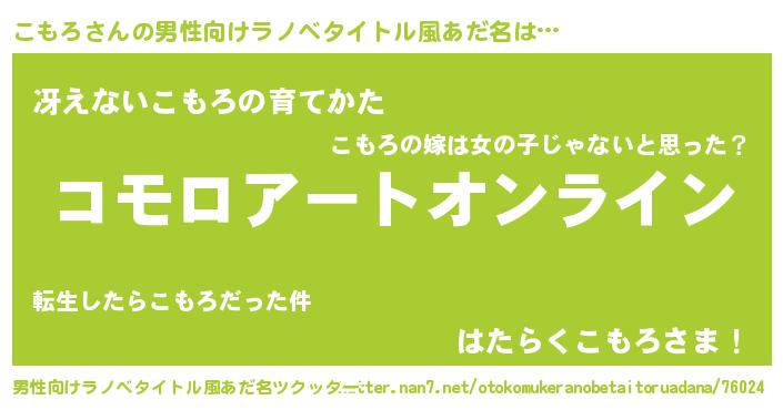 | 胡散臭い通販商品みたいなあだ名 | 『億万長者になれるブレスレット…その名も「こもろ」』 |