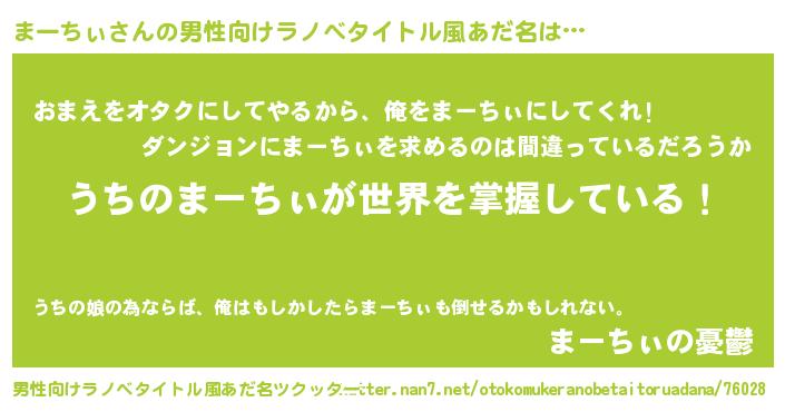 | 胡散臭い通販商品みたいなあだ名 | 『モンドセレクションを受賞した隕石のかけら…その名も「まーちぃ」』 |