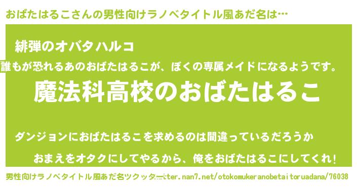 | 女子向けラノベタイトル風あだ名 | 『おばたはるこアンティーク』 |