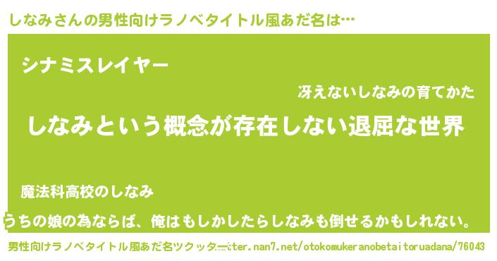 | ヘコむあだ名 | 『しなみ(笑)』『つくし』『しなっぺ』 |