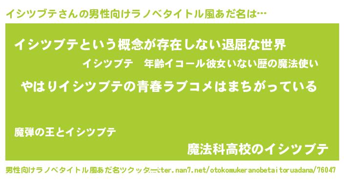 | 女子向けラノベタイトル風あだ名 | 『イシツブテの雑貨屋さん』 |