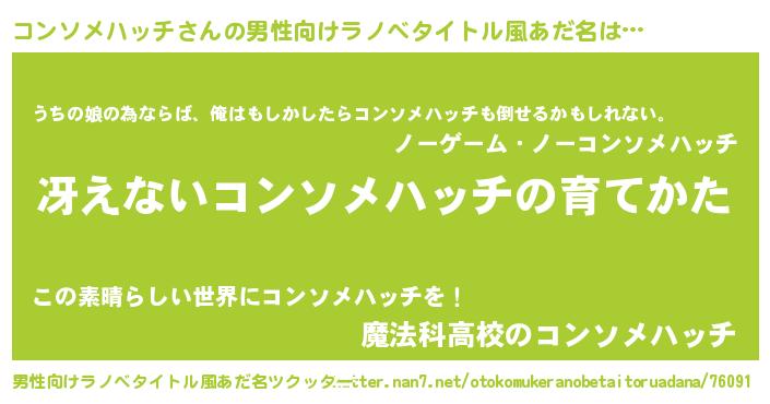 | ヒーロー風カッコイイあだ名 | 『ウルトラコンソメハッチマン』 |