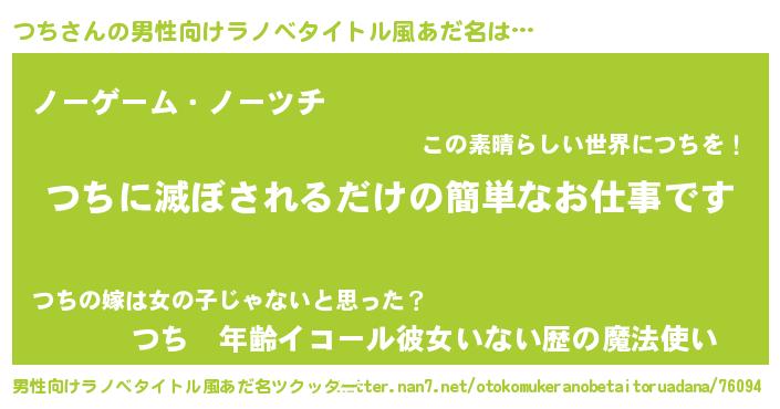| 女子向けラノベタイトル風あだ名 | 『横柄つちと宰相陛下』『死神つちの再婚』 |