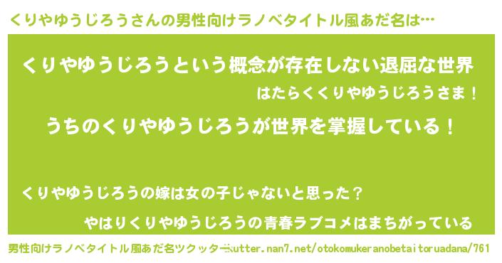 | 伝説のあだ名 | 『古文書に記された吟遊詩人くりやゆうじろう』 |