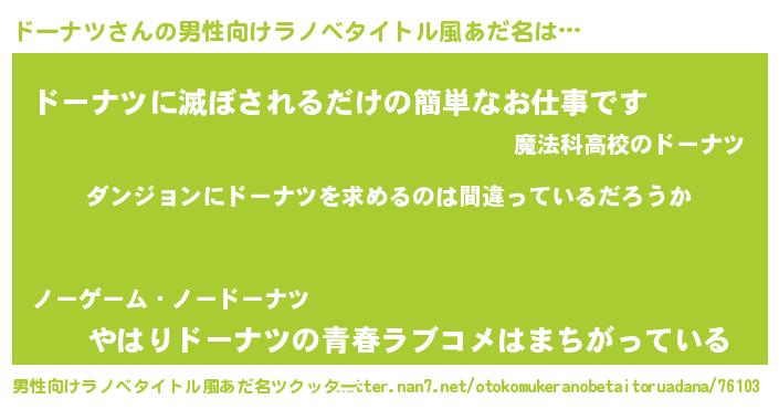 | ヒーロー風カッコイイあだ名 | 『暗黒騎士ドー』『ウルトラドーナツマン』 |