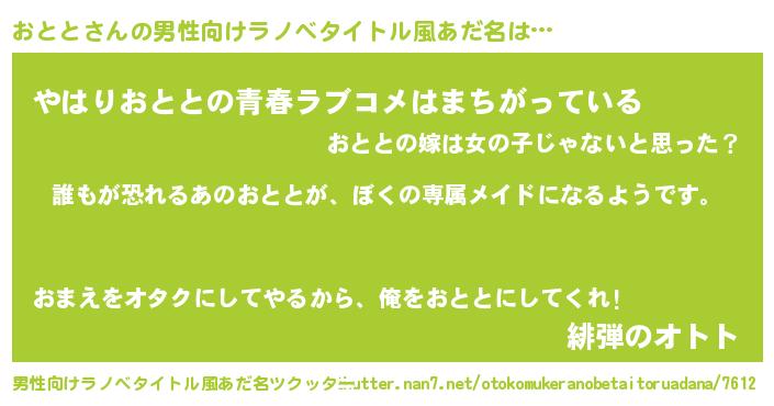 | 女子向けラノベタイトル風あだ名 | 『異世界でカフェおととを開店しました。』 |