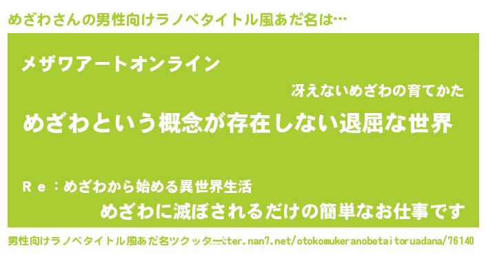 | 女子向けラノベタイトル風あだ名 | 『異世界で失敗しない100のめざわ』 |