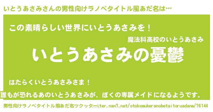 | 女子向けラノベタイトル風あだ名 | 『いとうあさみ姫と円卓の騎士』 |