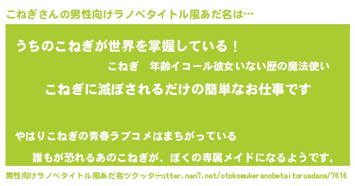 | ヘコむあだ名 | 『こねぎ(遠い目)』『酢こんぶ』 |
