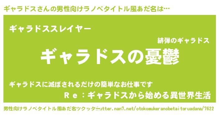 | 女子向けラノベタイトル風あだ名 | 『(仮)ギャラドスのやんごとなき事情』 |