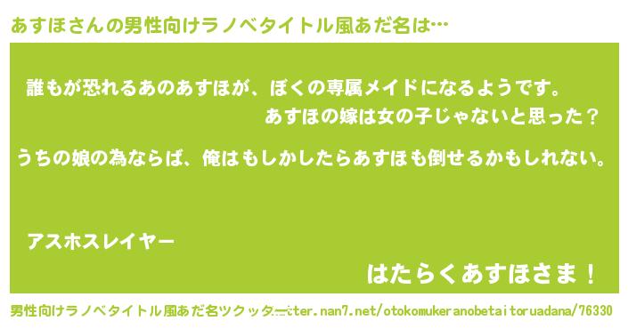 | 女子向けラノベタイトル風あだ名 | 『あすほ伯爵の花嫁』『あすほの契約王妃』 |