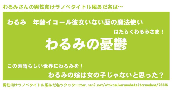 | 女子向けラノベタイトル風あだ名 | 『(仮)わるみのやんごとなき事情』 |