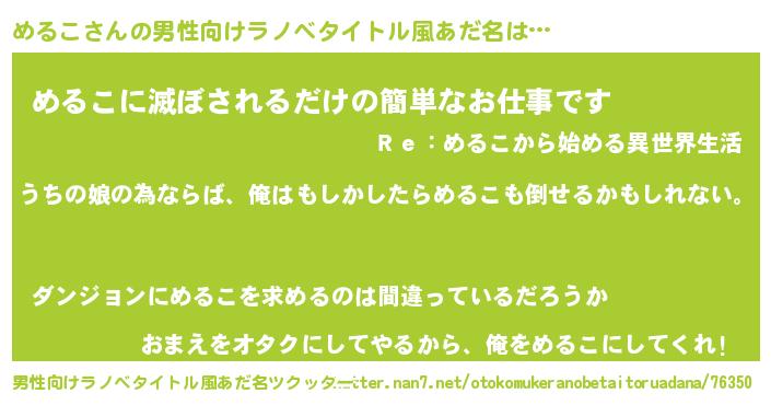 | 意味不明あだ名 | 『めるこフォーエバー』『自称めるこ』 |