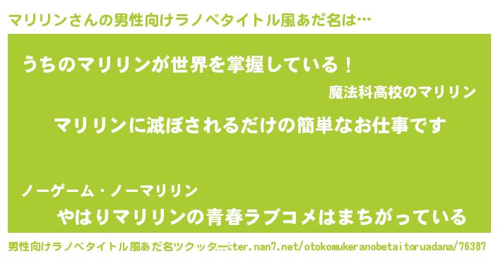 | ヒーロー風カッコイイあだ名 | 『ウルトラマリリンマン』『仮面マリダー』 |
