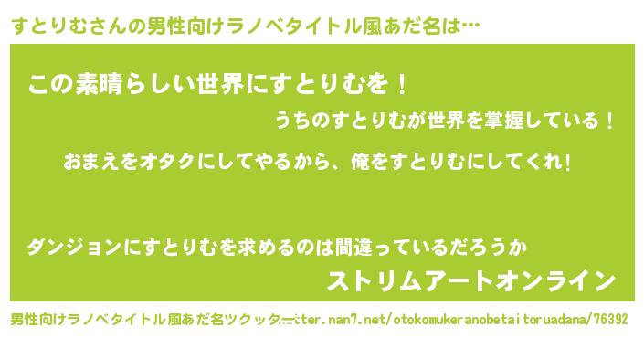 | 女子向けラノベタイトル風あだ名 | 『すとりむ夫妻のなれそめ』 |